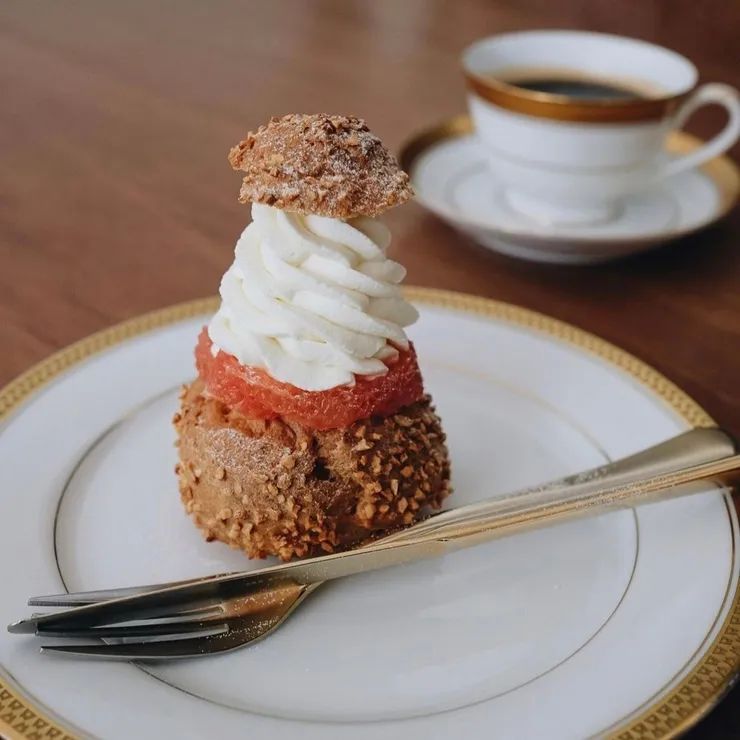 这里的招牌菜单是“季节性奶油泡芙”,这是一种酥脆的馅饼,上面铺有时令水果和大量的奶油。