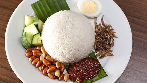 椰汁白米饭 ,搭配辣椒、小凤尾鱼、坚果、全熟蛋,我们来为您介绍马来西亚的国肴 — 椰浆饭。椰浆饭起源于马来农民的餐桌。马来农民在野外长时间的工作需要他们准备携带方便、即开即食的食物充饥。米饭、油和鱼的组合提供均衡的饮食,而且烹饪简单。这是一种源自马来的菜谱,就地取材,完美搭配了海鲜、椰子和鱼。