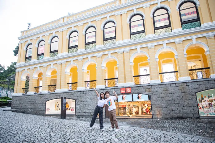 自从优衣库UNIQLO澳门大三巴前店开业后,既能避开人流又能和地标建筑大三巴牌坊合照的机位,又增加了一个!