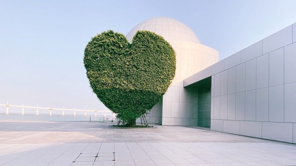 在由贝聿铭设计的科学馆外面有颗超大的心形树,有不少本地人会在人生的重要时刻来到这里拍照纪念。