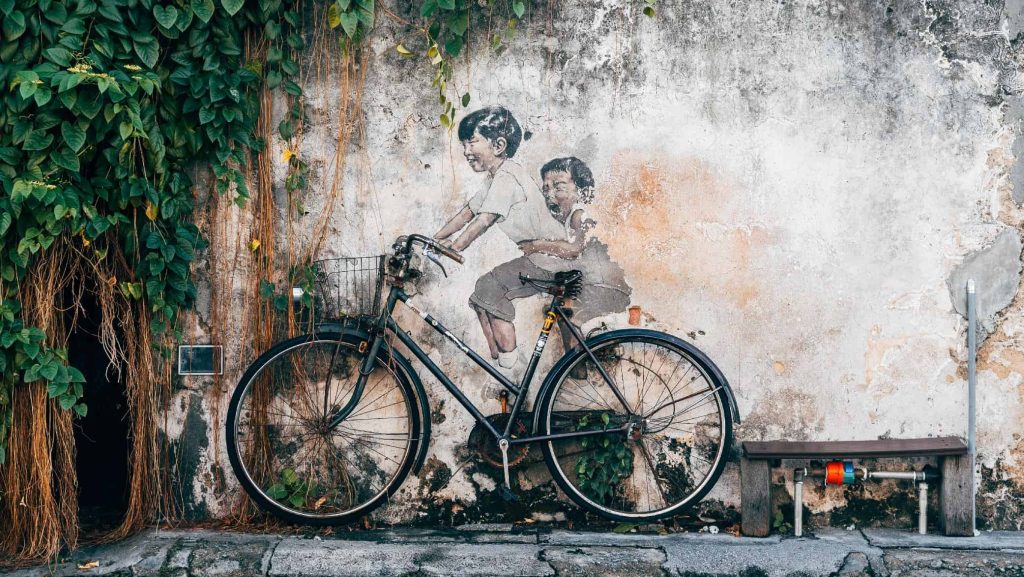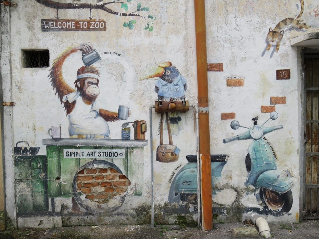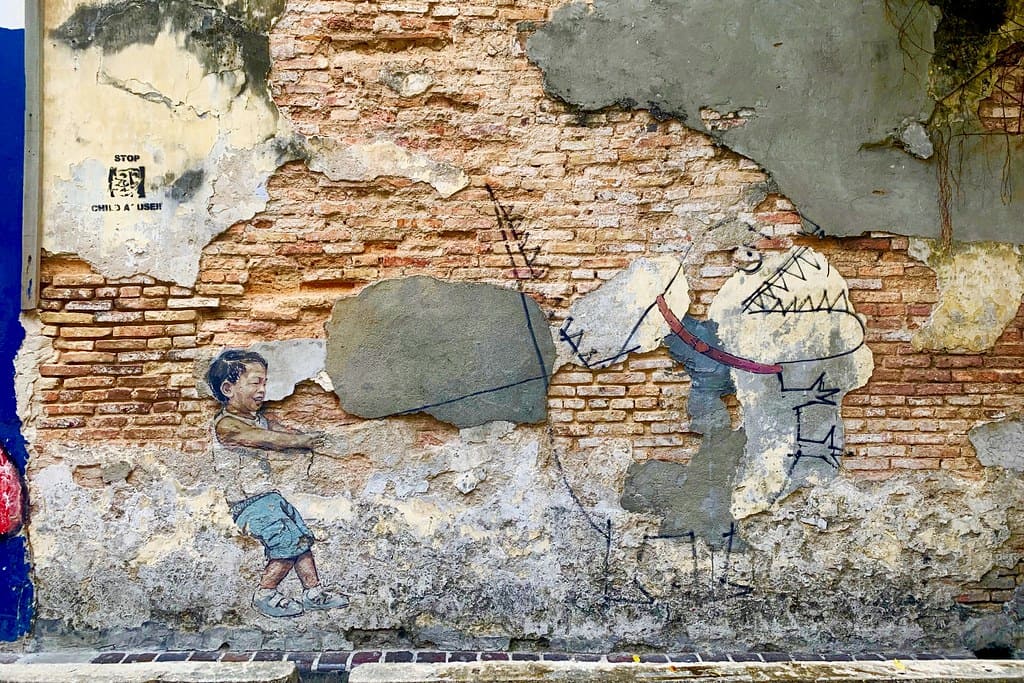 壁画并非集中于某条街道,而是如彩墨般洇染在亚美尼亚街(Armenian Street)的百年骑楼、本头公巷(Lebuh Chulia)的市井转角,甚至延伸至爱情巷(Love Lane)的隐秘后巷——每一幅作品都是艺术家与城市空间的对谈,等待着有心人用脚步丈量,用目光解码。