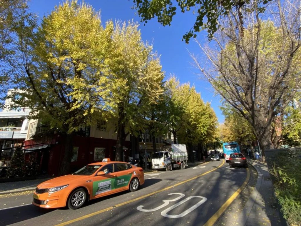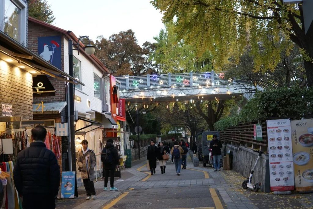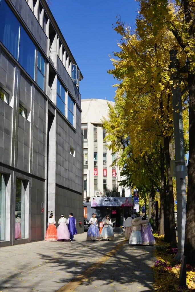 三清洞是一个类似红砖厂加东山口的文艺街区,里面可以看到艺术类博物馆、咖啡厅、屋顶和墙壁上的壁画和雕塑。而在十月底至十一月中旬,这里还能观赏到首尔最灿烂的秋季。