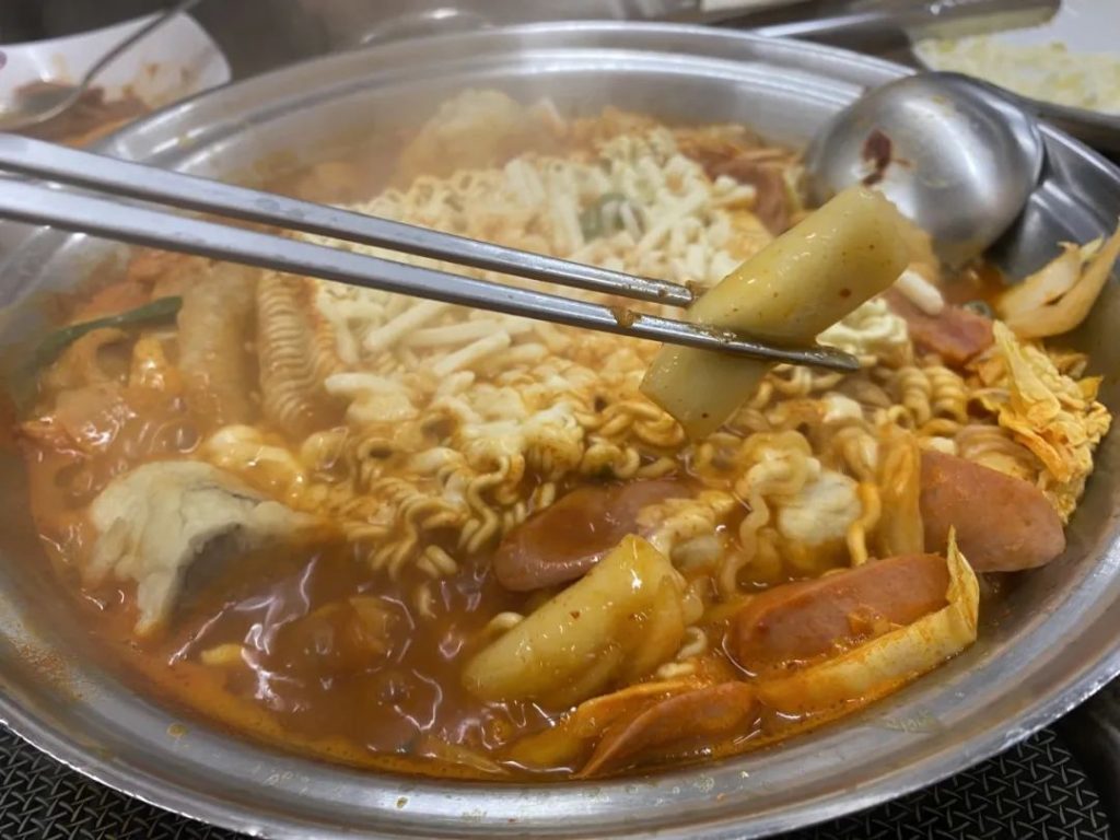 幸运的是,误打误撞进的店竟然惊喜的好吃。年糕汤的味道和之前国内吃的部队火锅完全不一样。这里的汤汁更加浓稠且有甜味。