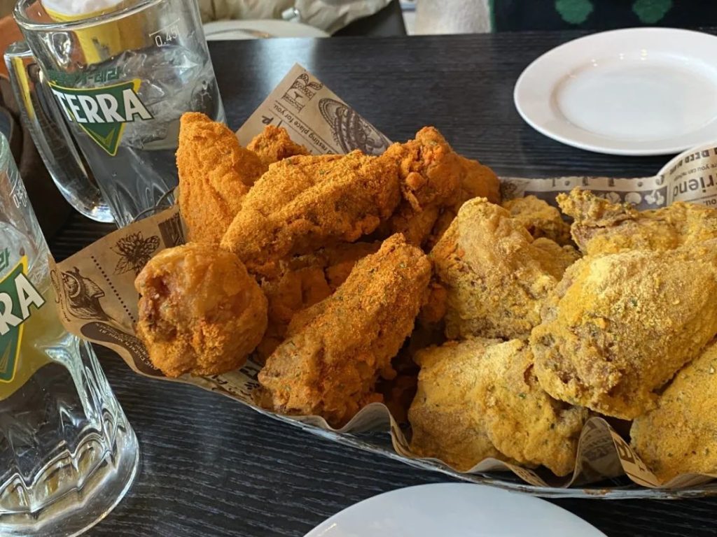 我们点了辣味和芝士粉味拼盘,包裹着的芝士粉浓郁香辣、鸡腿肉酥脆多汁,值得!