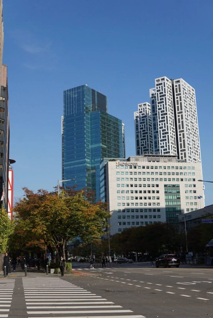 工作日的中午可以看到无数韩国打工人从大楼里鱼贯而出,人均身穿大衣,手捧咖啡,迈着轻快迅速的步伐迎面走来,还真有点压迫感。