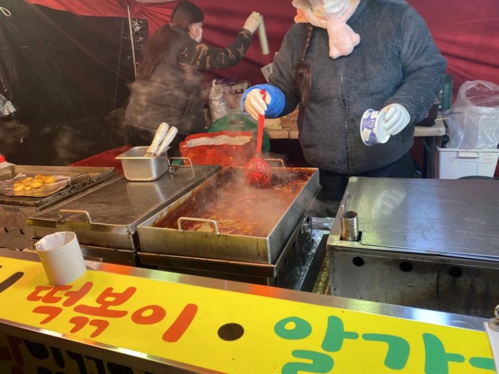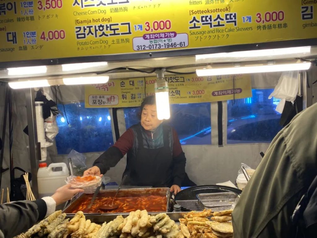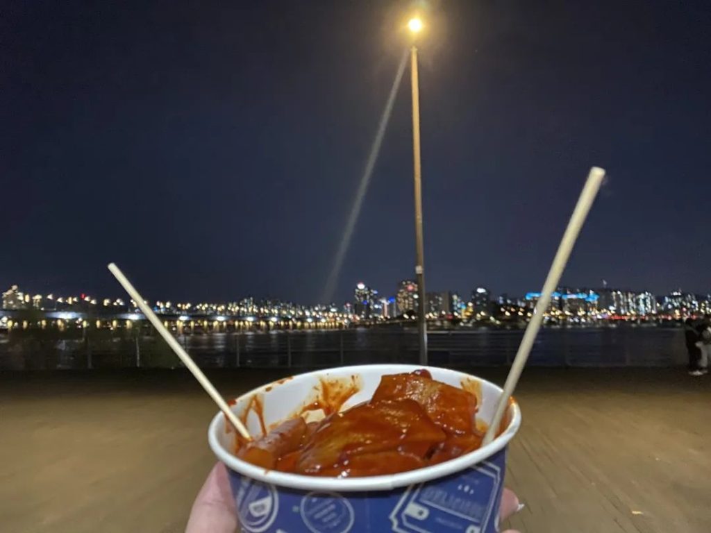 汉江公园的中心大门附近有一个卖炒年糕的地方,我们恰好赶到了最后一份。