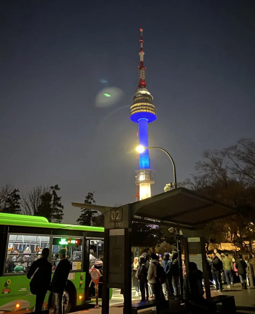 从韩屋村搭乘大约20分钟公交,直接可以到达首尔塔脚底!ps:公交非常晃,司机是在偷偷练习漂移吗?