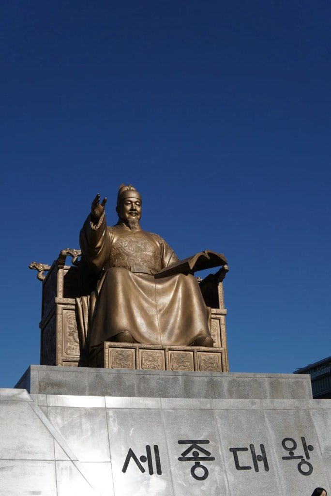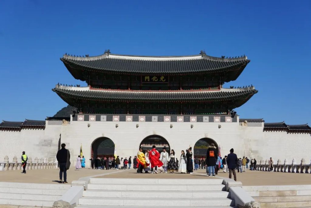 饱餐一顿后,我们坐地铁到达景福宫站。首先看到著名的世宗大王和李舜臣将军的两座雕像。一条马路对面便是光华门,景福宫的入口。