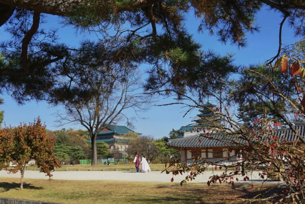再往深处走,景福宫也有一处御花园,里面有大片树林和一汪澄净的湖水。我猜世宗大王天气好时来闲逛也会收获一天的好心情吧。