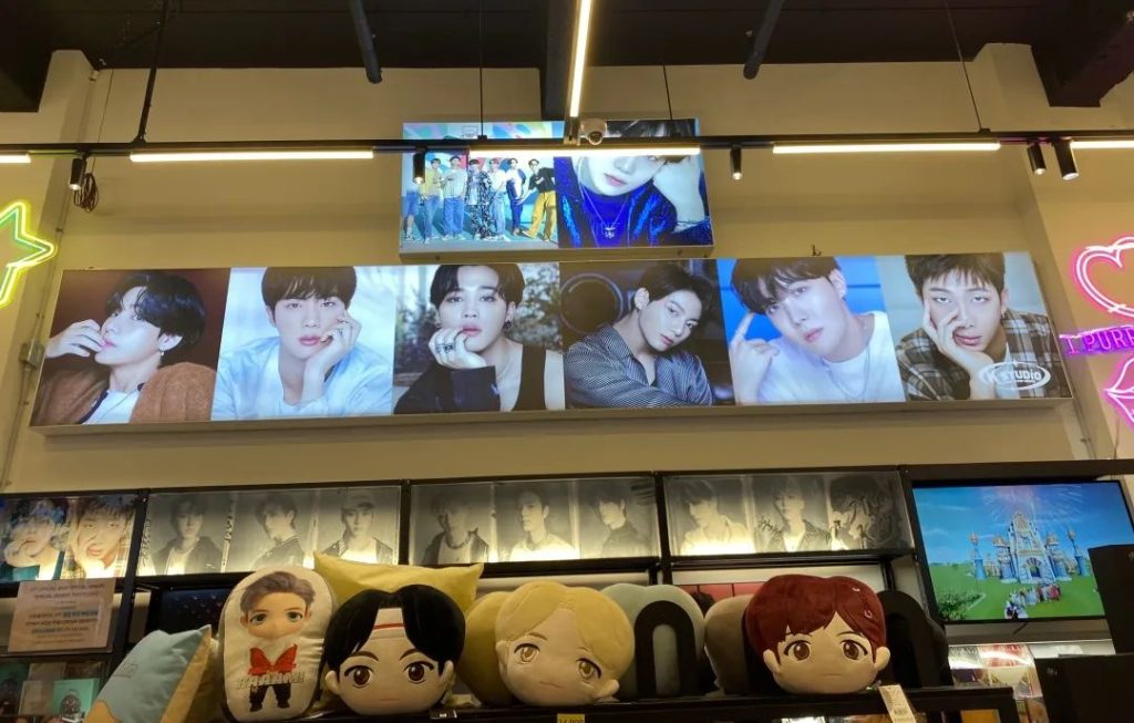 更加重要的是,明洞也是Kpop人的追星天堂。这里随处可见专辑店和爱豆周边店,有的甚至是几层楼,一楼周边,二楼人生四格,三楼专辑。根据不同的团进行了分类。
