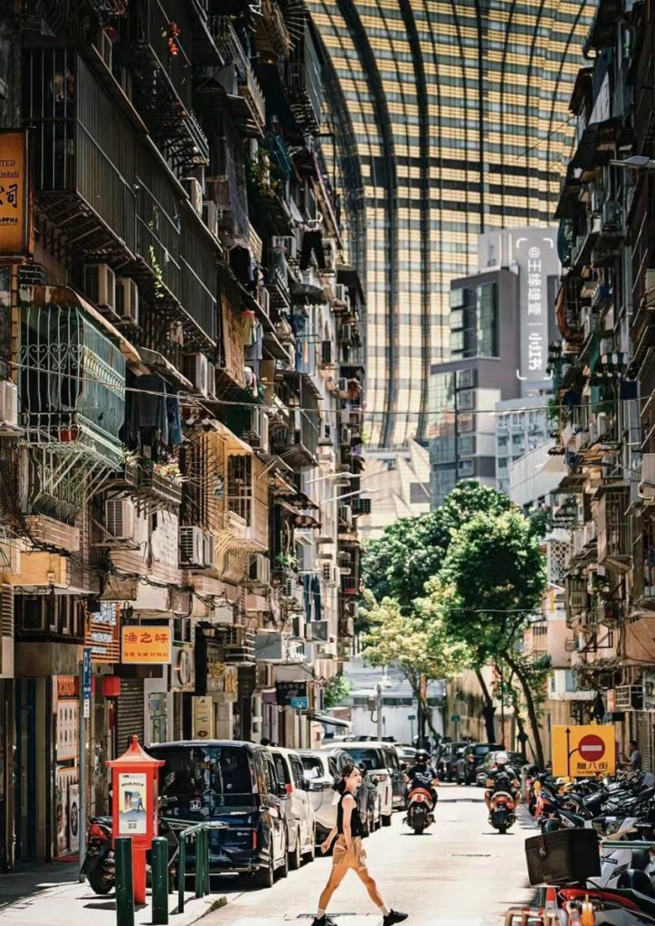 这个机位真的是超级小众了,对于每天来来往往的人们来说,亚马喇前地不过是一个位于新葡京前面的公交转乘点,没想到这里还藏着一个分分钟能拍出ins工业风大片的地方吧