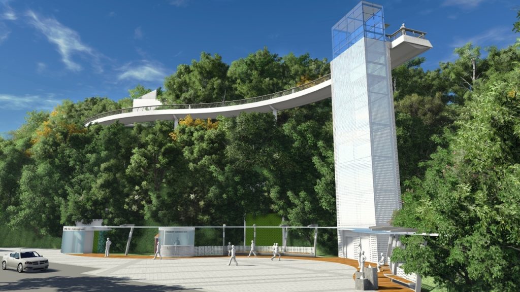 从山脚下的二龙喉公园上山,想节省体力的话可以顺道体验一把全世界最短的缆车,全程2分钟左右,下缆车后走几步就能抵达山顶的观景平台。