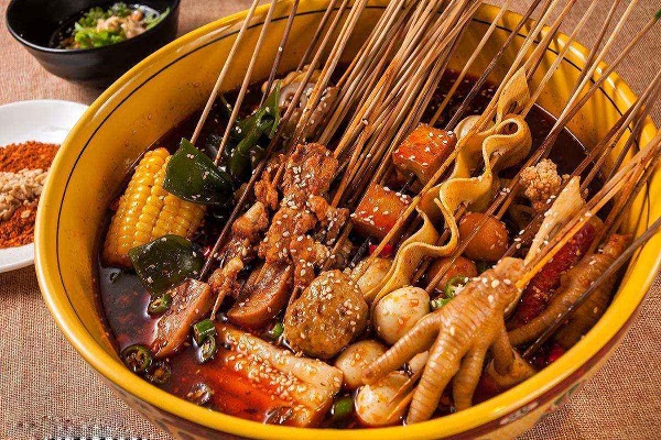 推荐理由:将各类食材串在竹签上,浸泡在热辣滚烫的红油锅中煮熟,自行挑选食用,灵活方便且味道独特,夜宵时段尤为受欢迎。