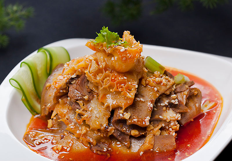 推荐理由:选用牛百叶、牛肉等材料,经过特制红油酱料拌制而成,麻辣鲜香,色泽红亮,展现了川菜中的凉菜工艺之美。