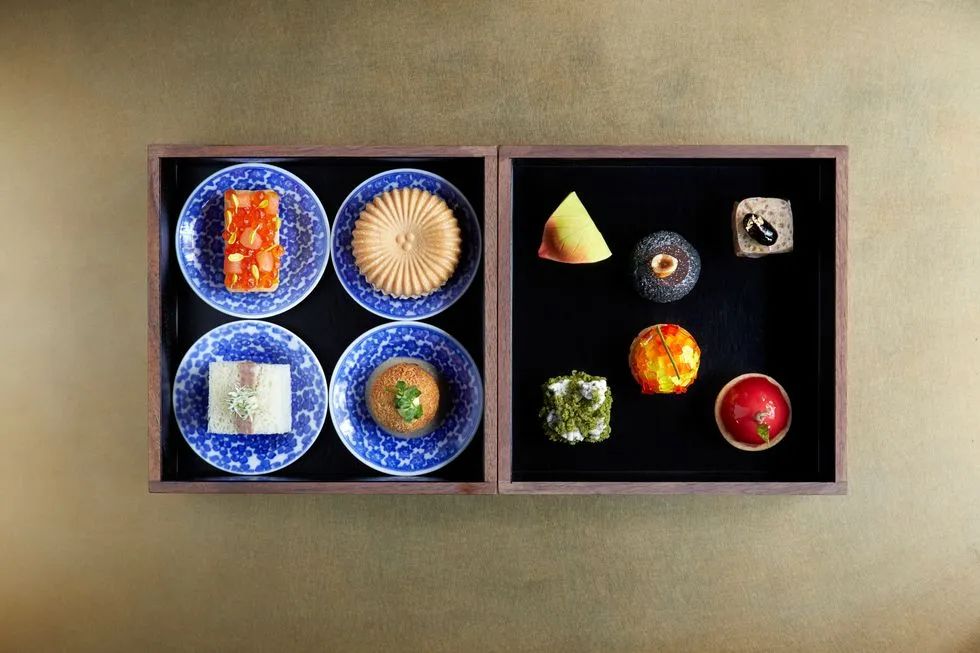 安缦京都除了根据季节供应不同风格的正式套餐以外,每天也有提供下午茶让客人品尝外型如花一般的高雅和果子,包含年糕、水果等制成日本传统甜点,最后还可以新鲜制作的京都抹茶作为搭配。