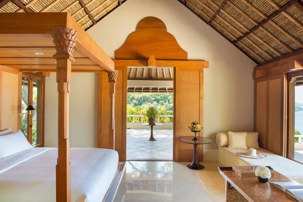 安缦 Amankila 酒店的套房位于制高点,可将海景最大化,并坐落在青翠的山坡上,映衬着阿贡山的迷人景色,可俯瞰龙目岛海峡和私人海滩的美景。