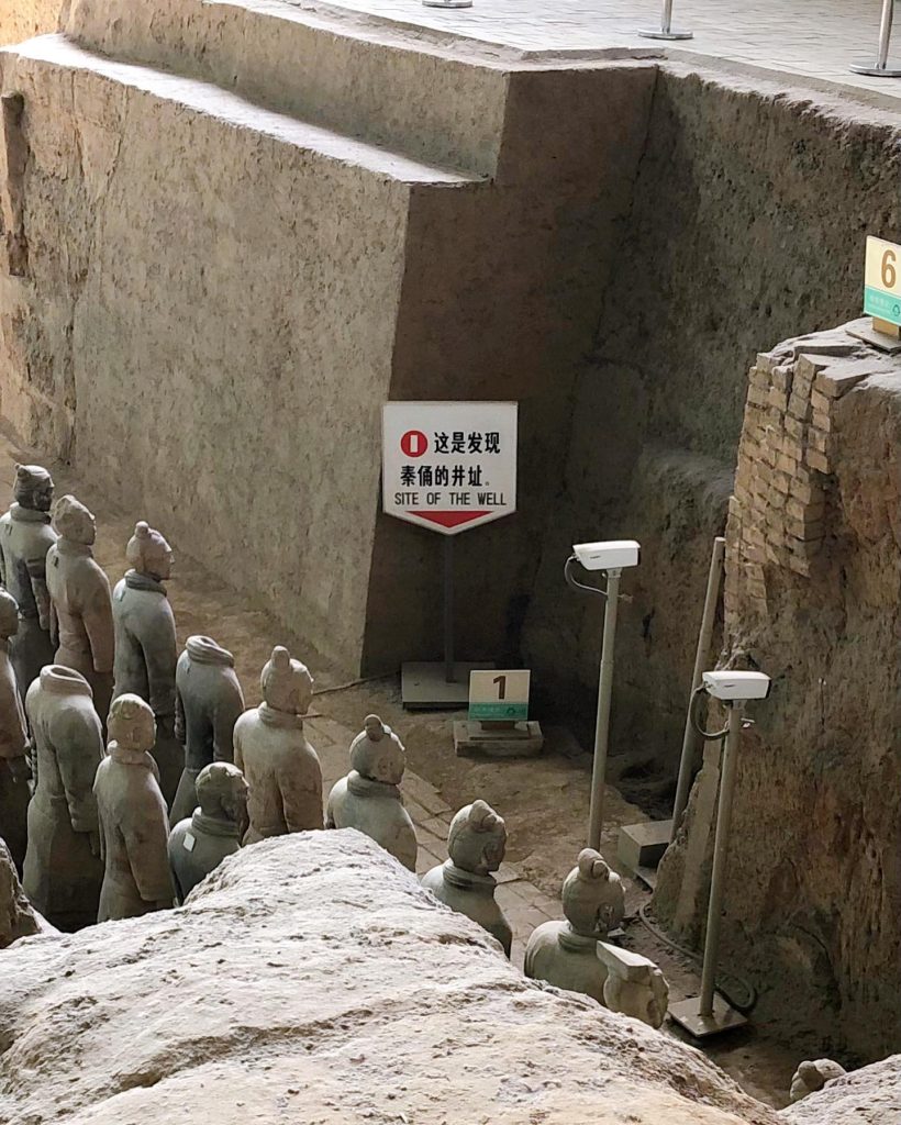 一号坑以步兵为主、战车与步兵相间排列的大型兵马俑军阵,估计共有陶俑、陶马6000余件,战车50余乘。