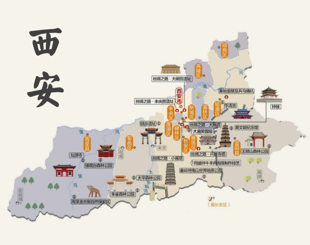 西安,古称长安、镐京,陕西省会,位于关中平原偏南地区。具有3100多年建城史,1100多年的建都史,历史上有13个王朝在此建都,自古有“秦中自古帝王州”之说。
