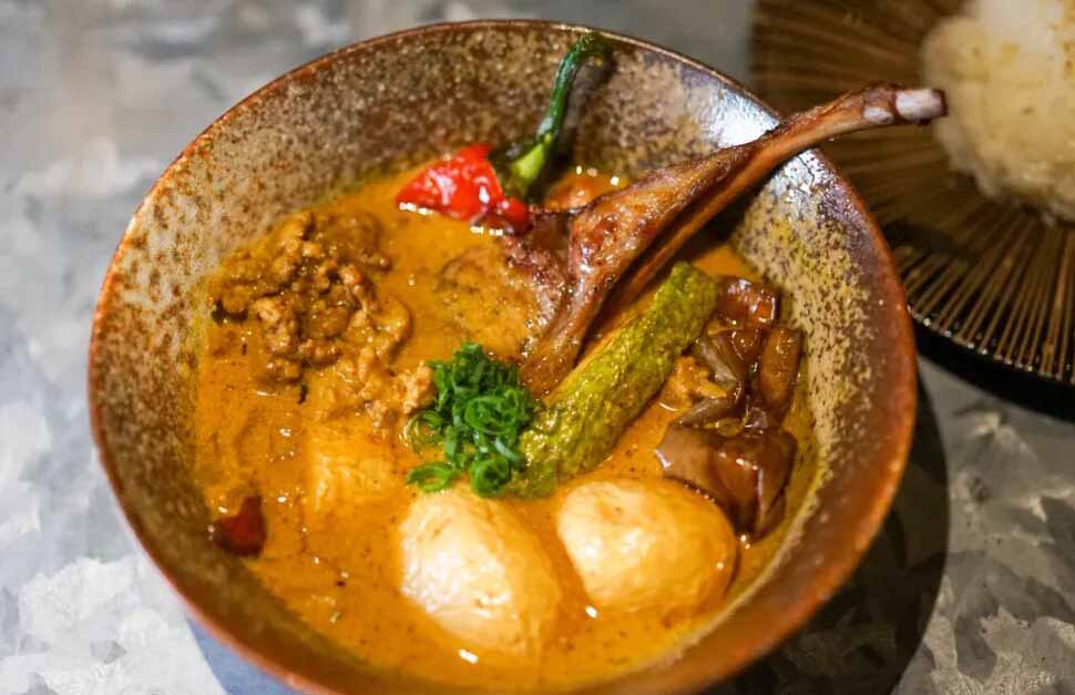 这家店还有一个比较特别的「羊咖喱」,做的是北海道汤咖喱风格,除了肉外,还会加入多种蔬菜,例如薯仔、辣椒、小瓜等,咖喱有微辛的香料风味。