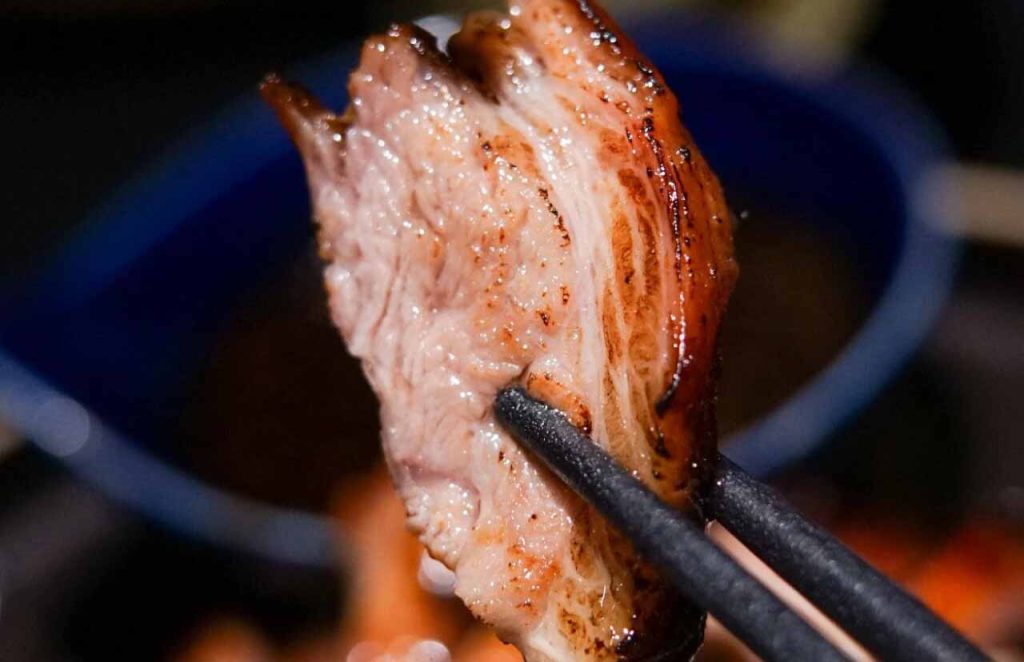 「羊舌」会分成舌尖与舌心两部分,从切割到烧制都是不同处理手段,舌尖烤得更干身,口感是脆爽的,与鸡胗类似。