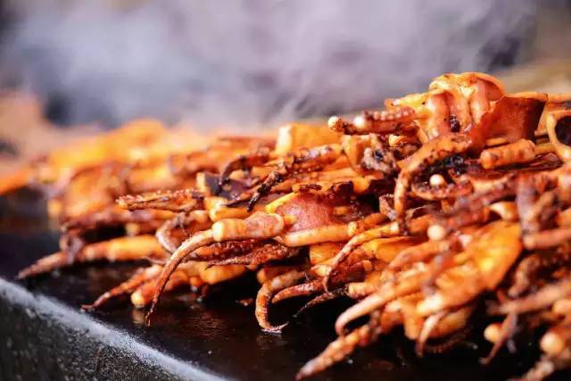 新鲜的鱿鱼被切成薄片或小块,放在炙热的铁板上煎制。随着“滋滋”的声响,鱿鱼逐渐变色,散发出诱人的香气。厨师熟练地撒上特制的香料、辣椒粉和酱料,让鱿鱼充分吸收调料的味道。铁板鱿鱼口感鲜嫩有弹性,每一口都能感受到鱿鱼的鲜美和铁板煎制带来的独特香味。