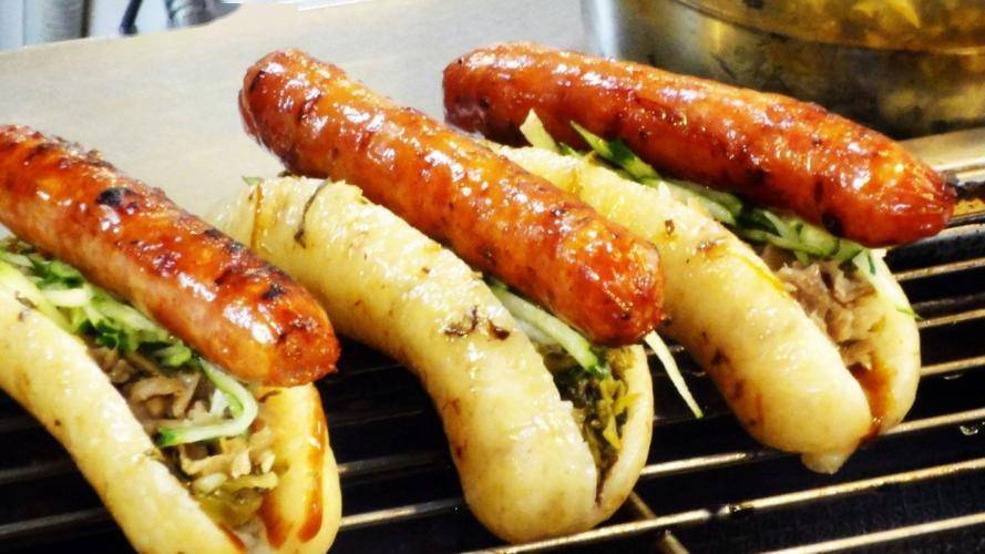 作为台北夜市的招牌小吃之一,大肠包小肠以其独特的口感和丰富的层次深受人们喜爱。将糯米肠与猪肉肠分别烤熟,然后把猪肉肠包裹在糯米肠内,再搭配上酸菜、蒜蓉酱和辣椒等调料。一口咬下去,外脆内嫩,糯米肠的软糯与猪肉肠的香嫩相互交融,酸菜的酸爽和酱料的浓郁味道完美搭配,让人回味无穷。