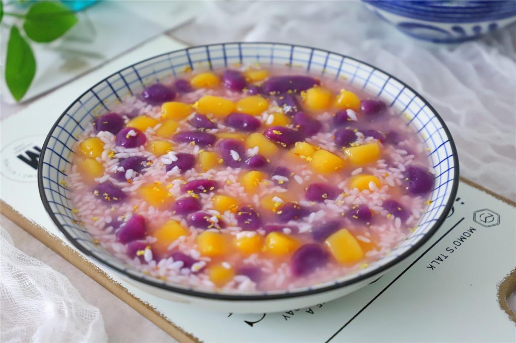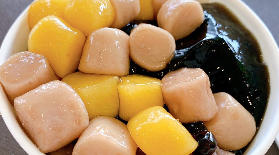 芋圆是用芋头制作而成的传统甜点。将芋头蒸熟后捣成泥,加入适量的淀粉和糖,揉成面团后搓成小圆球。芋圆口感软糯Q弹,富有嚼劲,通常会搭配糖水、红豆、薏仁、水果等食材。一碗色彩斑斓的芋圆,每一口都充满了芋头的香甜和食材的丰富口感,让人感受到满满的幸福。