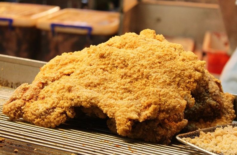 台北夜市的炸鸡排堪称一绝,尤其是“豪大大鸡排”。选用超大份的鸡月匈肉,经过特殊腌制后,裹上面粉或炸粉放入油锅中炸至金黄酥脆。外皮酥脆得掉渣,内里的鸡肉却鲜嫩多汁,再根据个人口味撒上蒜味、椒盐或甜酱等调料,香气四溢,让人欲罢不能。
