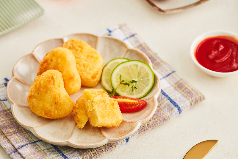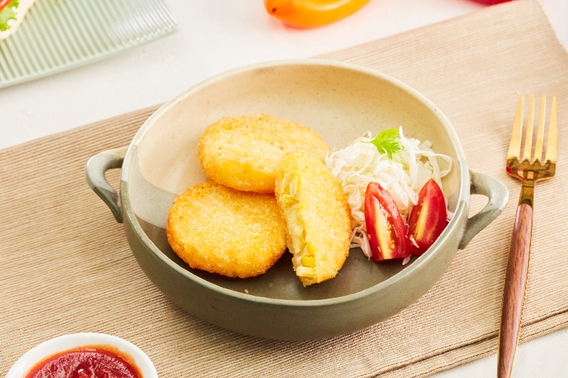 将玉米和面粉混合,加入适量的水和调料,制成小饼状。然后放入油锅中炸至金黄酥脆。玉米饼外层酥脆,内里保留了玉米的香甜和软糯,口感独特,外脆内软,玉米的自然清香在口中弥漫开来,是一道深受年轻人喜爱的创意小吃。