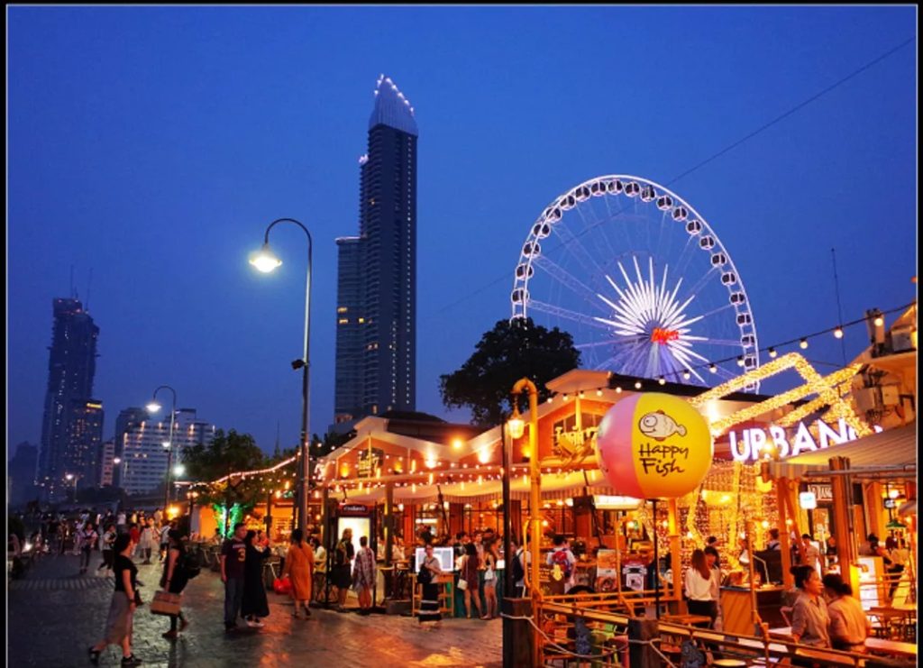 地标性的大型摩天轮 Asiatique Sky吸引不少游客拍照纪念,进驻超过1,500家店面与40个餐饮品牌,按照性质划分为4个区块,会举办大型剧场节目、时尚特色小店丰富、河岸酒吧与餐厅林立,是曼谷夜生活的好去处。