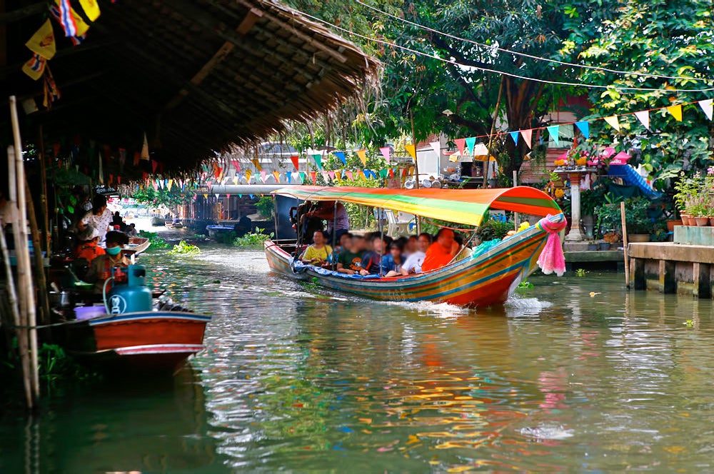 空叻玛荣水上市场规模较小,观光人潮也较不拥挤,充满本地风味,一进到市场就能看到运河两旁河岸卖著各种蔬菜、物美价廉的热带水果和鲜艳花卉,再深入逛下去,还有衣服和家居饰品、二手古董。此外,空叻玛荣水上市场有近8成都是美食摊贩,在地小吃更是多到数不清,有许多不常见的餐点这里都有,空叻玛荣水上市场提供2种运河游船,游客可自行参考。