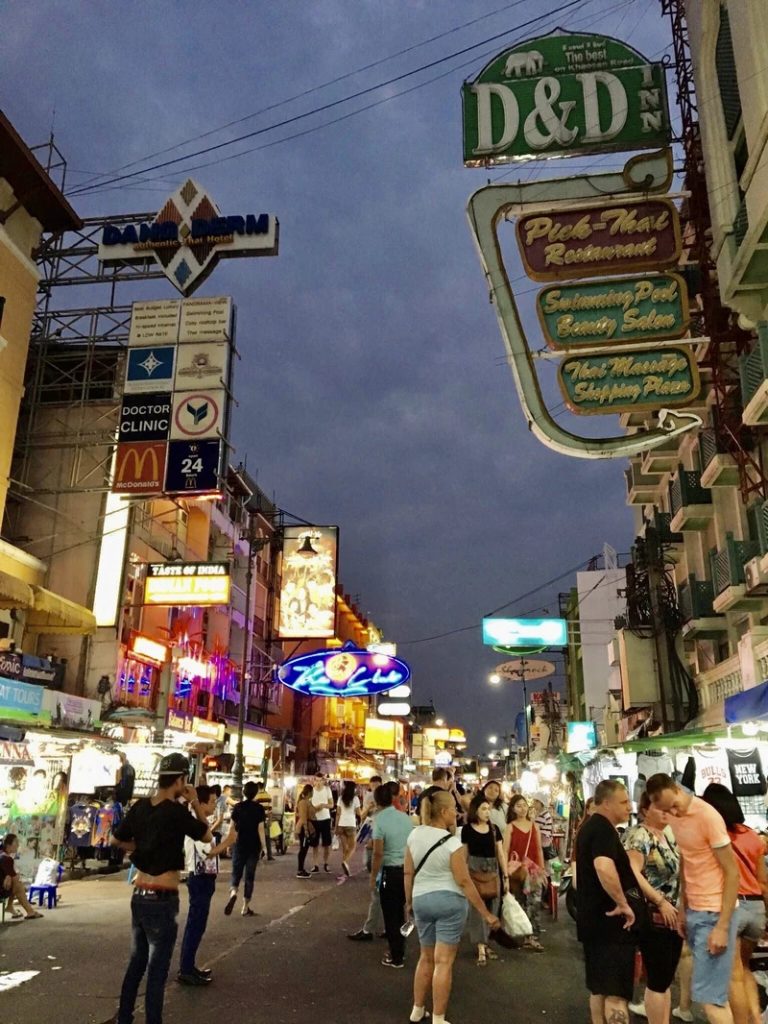 泰国曼谷 Khao San Road考山路,号称背包客天堂,当时会爆红是因为 “海滩The Beach ”这部以泰国为背景的电影中,主角李奥纳多・狄卡皮欧就住在考山路的背包客栈中,而且这里住宿便宜又便利,也因此吸引了非常多欧美背包客前来。