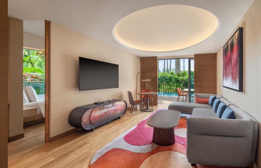 酒店的WET泳池是新加坡最大的自由形态户外度假村泳池之一,周围环绕着美丽的景观。泳池中的 WET酒吧会提供美味小吃和清爽鸡尾酒。酒店的其他餐厅也会提供创意美食,让客人尽情享用。