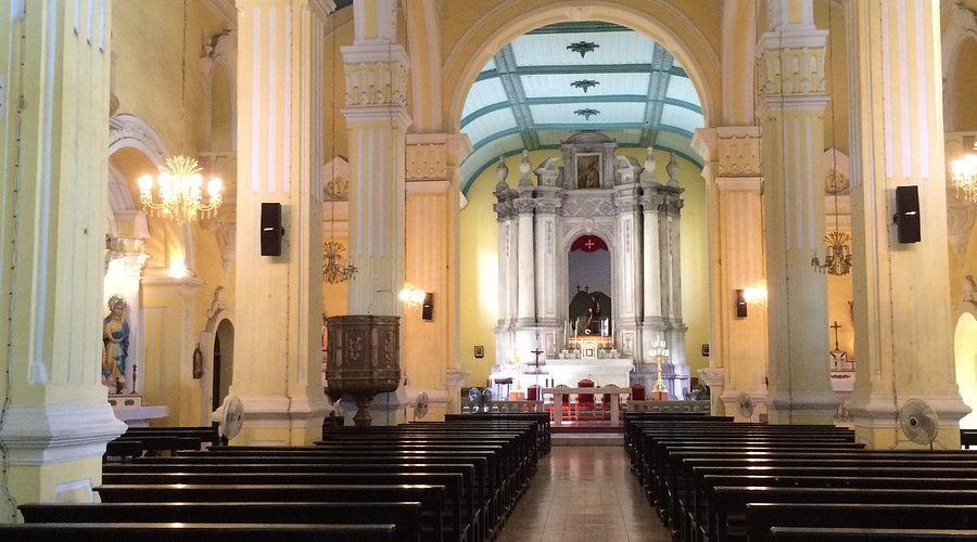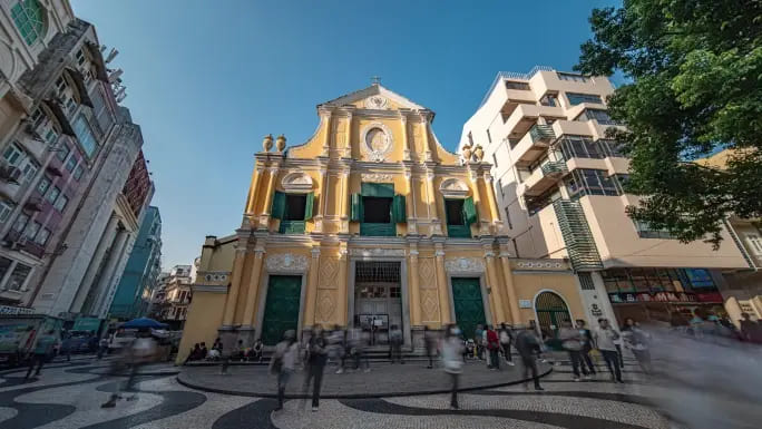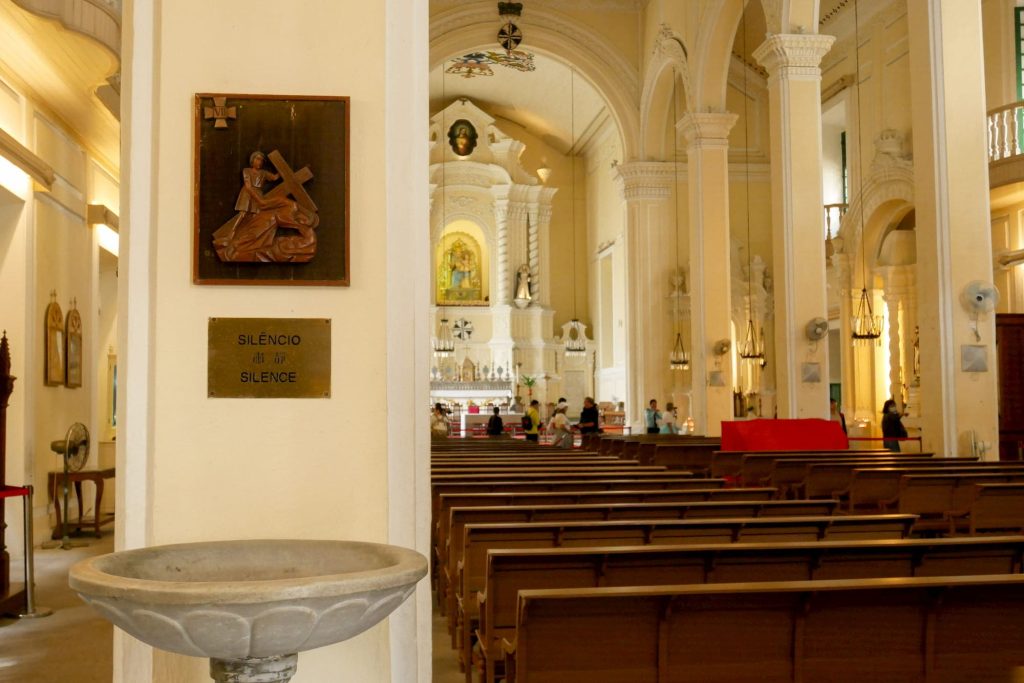 座堂,是指设有主教座位的教堂,象征这里的主教既是教师,又是地方管理者的双重角色。这座建于1622年的圣堂,又被称为主教山小堂,拥有尖塔式钟楼,不单是澳门西端的地标,更是澳门重要的文化遗产之一,圣堂前的广场置有大理石雕刻而成的圣母像。