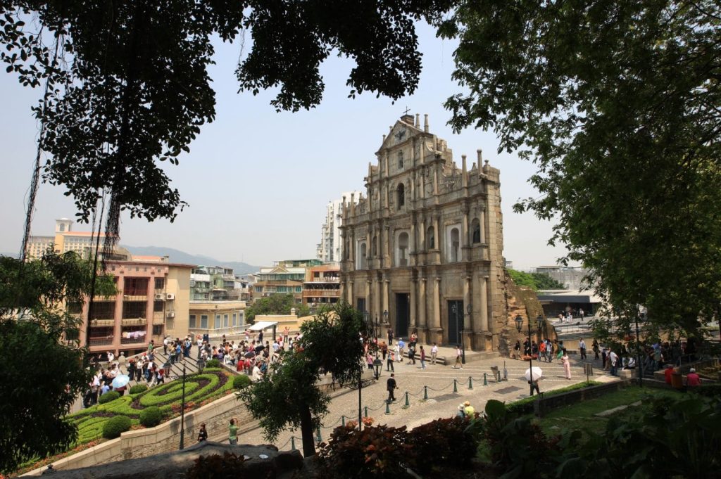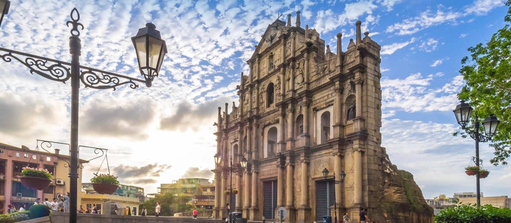 400多年前,葡萄牙人侵占澳门,天主教也随之传播到澳门。1602 年,葡萄牙人在澳门建起了圣保禄教堂,葡语 “圣保禄” 发音接近粤语中的 “三巴”,所以也称 “三巴教堂”。前冠以“大”字,用于区别另一座小三巴教堂。教堂在1835年经历了一场大火,烧得仅剩下教堂的正面前壁,这一堵有着400多年历史的壁墙上有耶稣、圣母玛利亚以及四位天主教圣人的雕像。