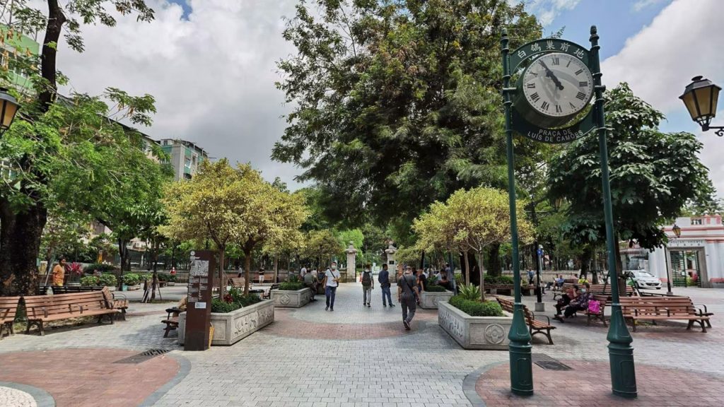 澳门出租车是内地的五倍价格,打表以“米”为计算单位。本着节约原则,从酒店到徒步的起点,我们坐公交车前往,澳门的公交车一律6元葡币,微信小程序刷“搭车码”,自动折算人民币,汇率折算约为0.88,非常方便。白鸽巢公园的侧面就是东方基金会会址,会址的旁边就是基督教坟场,三处历史遗迹紧挨在一起。