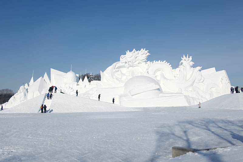 太阳岛雪博会被称为“世界上最大的雪雕艺术群”,想看雪雕一定要去那里,白天的雪雕在阳光的照射下更显精致,拍照打卡非常出片。而且这里会设置许多冰雪游玩项目,比如滑梯、雪圈等,非常有趣。