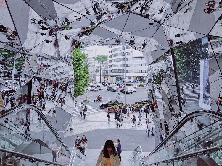 2014年,建筑师中村拓志在东京表参道与明治通交叉路口的繁忙街道上,立上了一座夺目的新地标东急PLAZA。其中万花筒般的入口,镜面交错下的电梯纵横,成为到此必自拍的热门地。