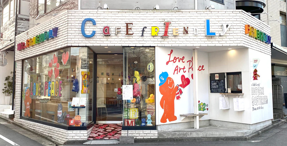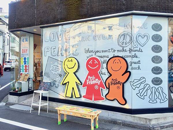 代官山的人气咖啡店“Mr.FRIENDLYcafe”,白色店面彩色LOGO就很抓眼球,这里还设置了座位专门给客人留影用。