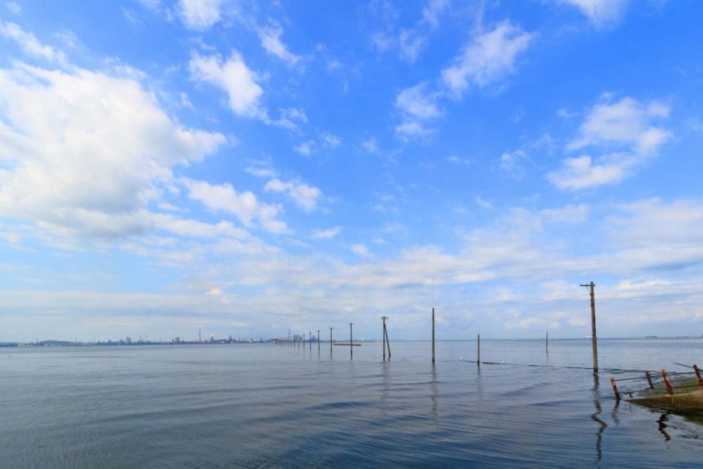 从海边到海上方向,海中并列排放着的电线杆是一种多么不可思议的光景,而这真实存在的风景就在日本千叶县木更津市的“江川海岸”。江川海岸平静的水面倒映出天空的万千景象,绝美的景色让人一眼难忘,已然成为了摄影爱好者们的聚集点。