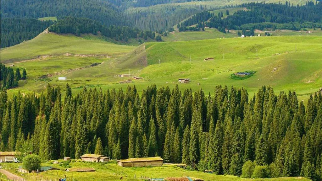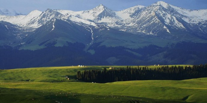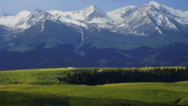 伊犁河谷的景色在5月底开始进入最佳的观赏期,也正式进入旅游大旺季,这个时期的云杉森林、溪流、草原、雪山随处可见,是一片绿意盎然的景象。
