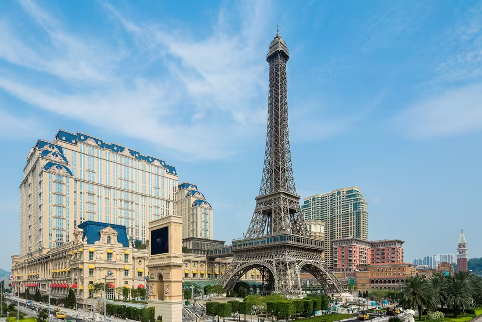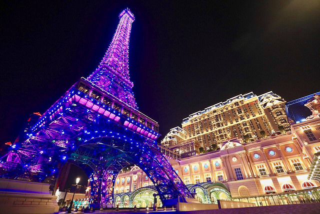 逛完罗马,我们这就前往巴黎!澳门的巴黎铁塔位于巴黎人酒店,是法国菲尔铁塔等比缩小一半而建。虽然它小了,但是它更上照了!拍摄秘诀是前往铁塔对面的公园,大片草坪、绿植迷宫、公园凳,随便拍拍就是满满法式风情。