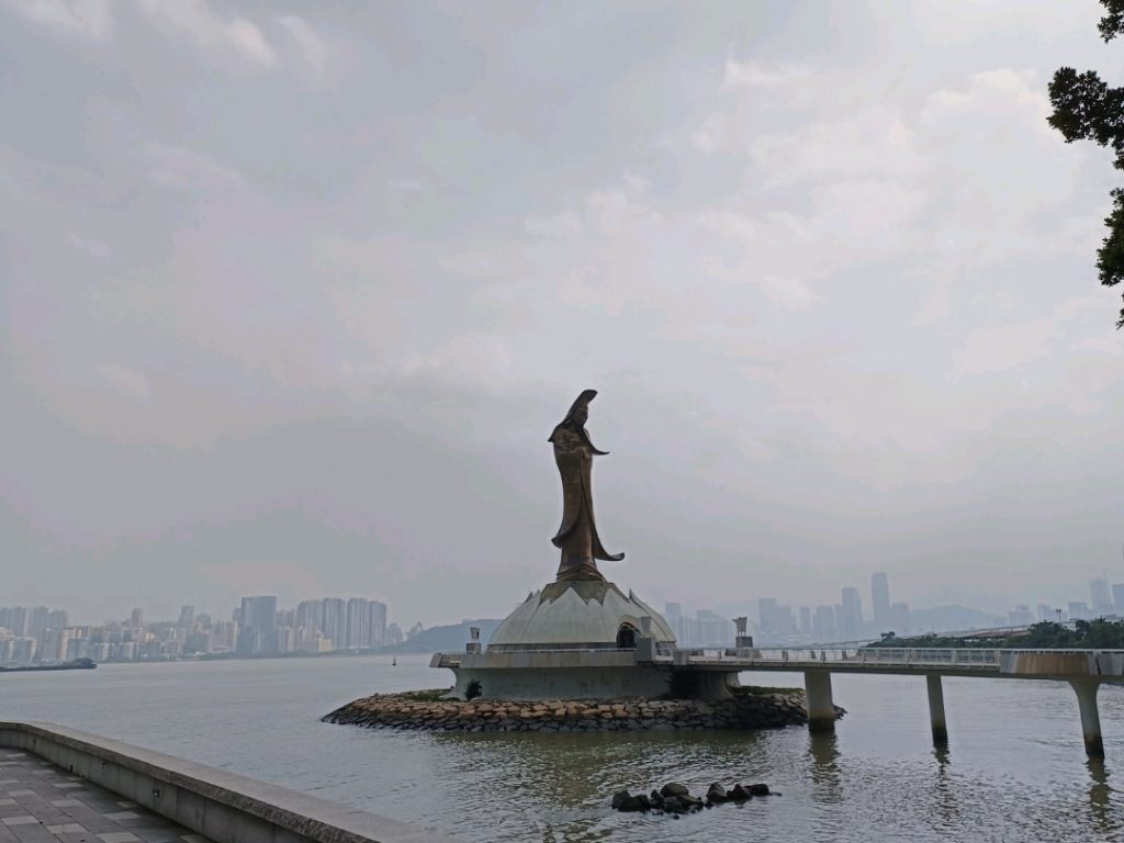 左侧可以看到夕阳下绝美港珠澳大桥,右边可以看到巨大观音像俯瞰澳门繁华楼群的画面,非常特别!