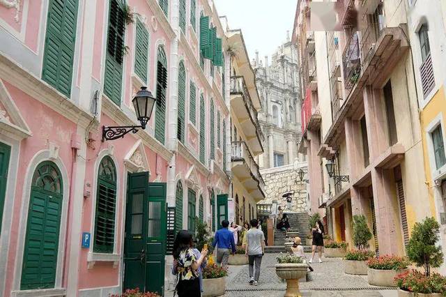 还在大三巴正面拍千篇一律的游客照吗?摆脱平庸游客照的关键是找特别的角度。恋爱巷是一条位于大三巴旁侧的小巷子,巷名葡文原意是对神的敬仰之情,从这个拍摄角度就可以看出。但翻译成中文就变了意味,更多了些浪漫情怀。整个巷子里都是有着巴洛克风格、古典主义风格等等的保护历史建筑。在这样的街道上,背景是高耸的大三巴,仿佛走在欧洲的街头。建筑颜色也满满少女心!都是可可爱爱的粉红、鹅黄等,出片率百分百!