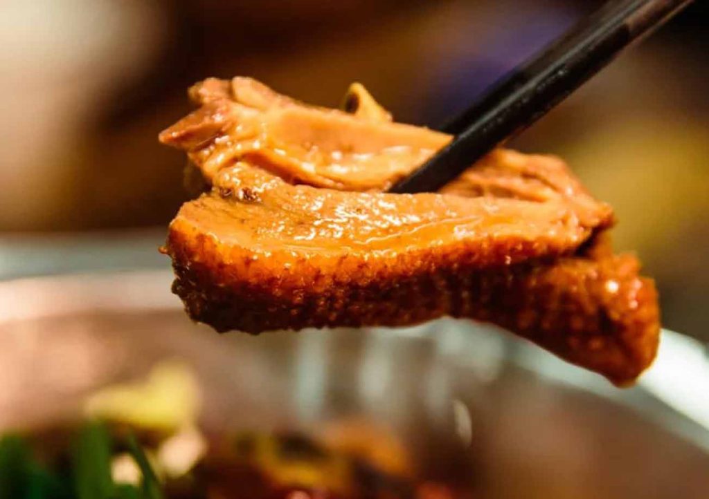 这家店有不少山野腊货,尤其喜欢大米桂叶熏制过的熏鹅,要用大量葱姜烧煮;老母鸭做的板鸭,与糟菜同蒸,弹嫩入味。