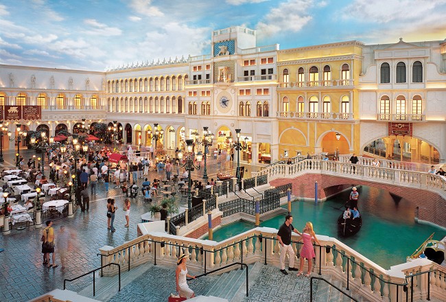 在威尼斯人大运河合影,坐贡多拉船体验老钱生活。威尼斯人是澳门最大的综合度假村之一,位于澳门路氹城。其中的大运河是仿照意大利威尼斯的运河而建,游客可以乘坐摆渡船在水道上游览,欣赏绚丽的建筑和景观。