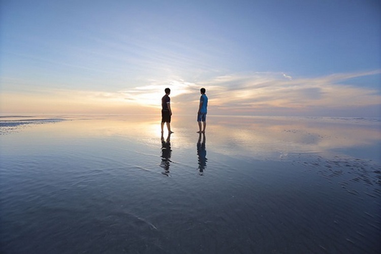 你可曾想过自己可以站在汪洋中的一片沙洲,这里天海相连,如同玻利维亚乌尤尼盐沼般梦幻