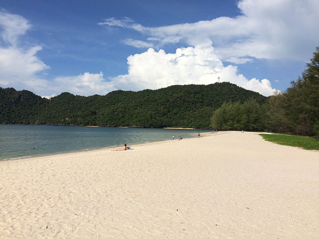 丹绒鲁海滩坐落于丹绒鲁海滩,位于兰卡威的北端,是兰卡威最美的海滩,和兰卡威的每一处海滩一样,丹绒鲁也有美丽的沙滩和清澈的海水,只不过不同的是,与其他海滩相比,这里游人稀少清静。退潮时丹绒鲁和附近几座迷人的小岛就连成一片,沙滩变成绵软的白沙堆般,可以步行过海上岛,拍上独特的照片。