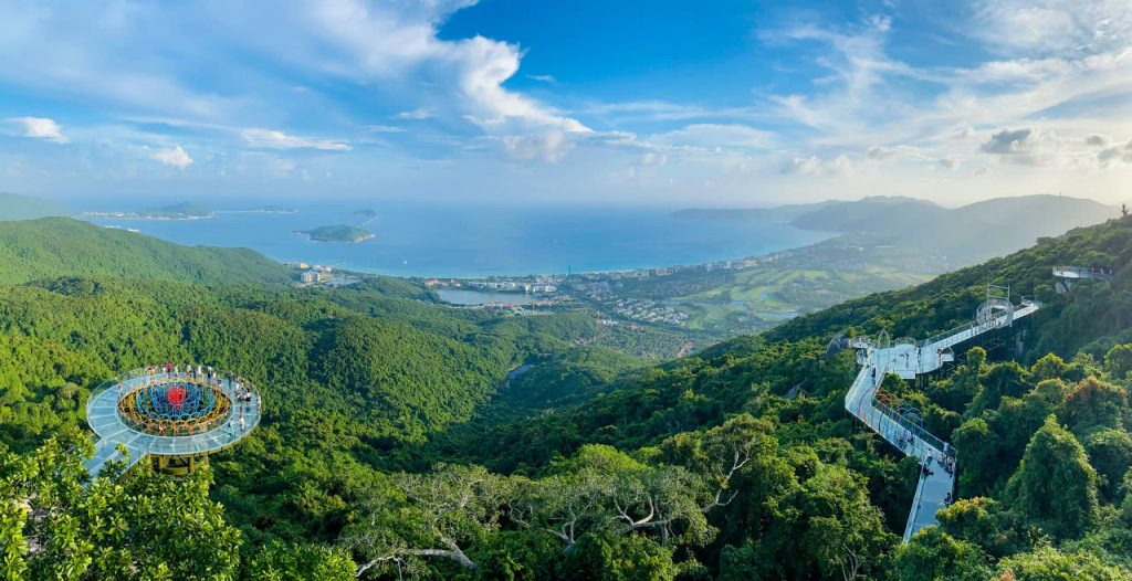 呀诺达的雨林景色,仿佛是与天空和大海融为一体的美丽画卷。雨林中的空气湿润,阳光透过密密的树叶洒下,形成斑驳的光影,而远处的山海相接,又让人不禁感叹自然的鬼斧神工。你可以在这里体验到与自然亲密接触的乐趣,伴随着鸟鸣和虫声漫步在林间小道上,仿佛进入了一个静谧的仙境。特别是当你登上索道,从高空俯瞰整个雨林时,整片森林的壮丽景观一览无遗,海天一色的美景令人陶醉。