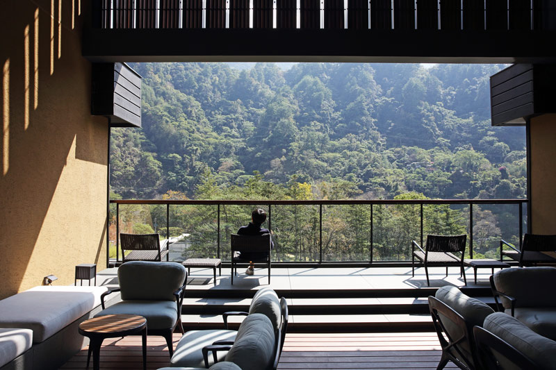作为中国唯一的虹夕诺雅分号,去到台湾是决然不能错过这间虹夕诺雅·谷关的。酒店坐落于台中市的谷关温泉乡,被海拔3000米以上的台湾中央山脉所环绕,坐拥绿荫参天,倚山偎翠的的峡谷景色。